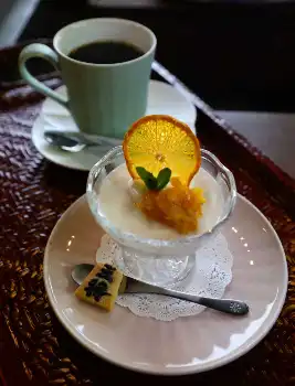 王将戦午後のおやつ 藤井王将ベイクドチーズケーキとレモンティー 菅井八段は濃厚ミルクプリンとコーヒー