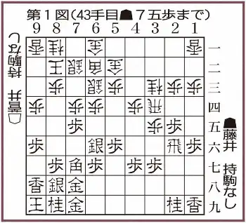 陶板ハンバーグを味わった休憩明け。計1時間40分考慮して▲7五歩(第1図)を決断した。菅井のダイヤモンド美濃を上回る穴熊の堅陣を頼りに、踏み込んだ。