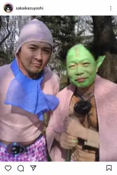 「クラッシャーカズヨシ 出てくれましたね 尻にダーツ 口の中にクラッカー めちゃくちゃ楽しかったです ホンマにありがとうございました」と2ショットでのオフショットをアップ。