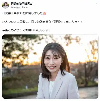 元Abemaキャスター・岡部茉佑さん、司法書士事務所を開業 上智大時代ミスコン出場で話題に