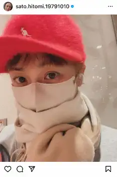 「こんなに隠れているのに」とつづり、赤いキャップにマスク、首元もマフラーで覆っている自身の姿をアップ。「『今日 赤いふわふわのキャップをかぶっていらしたりしますか?』とLINEが」と後輩女優からまさかのメッセージを届いたことを明かした。