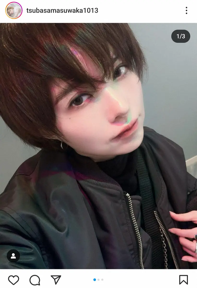 過去にも「つばさ君推してください」とメンズメイクを披露しており、「メンズメイクを参考にしたのは山田涼介様です。美」と明かしていた。