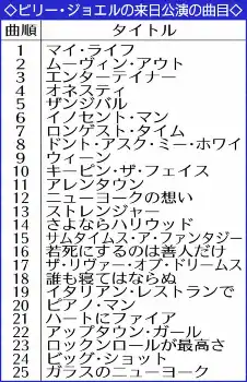 ビリー・ジョエルの来日公演の曲目 Photo by スポニチ ビリー・ジョエル “ラスト来日公演”で「ピアノ・マン」など全25曲披露 … ギャラリーで見る この記事のフォト 2024年01月25日の画像一覧 もっと見る 2024年01月25日の画像をもっと見る