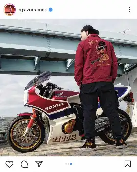 RGの投稿に、フォロワーからは「素敵」「Wow you lookin’ so hot!!!カッコいいです!!バイクとスニーカーに合います」「ROTARと言えば、この柄のスカジャンが憧れでした」といった反響が寄せられている。