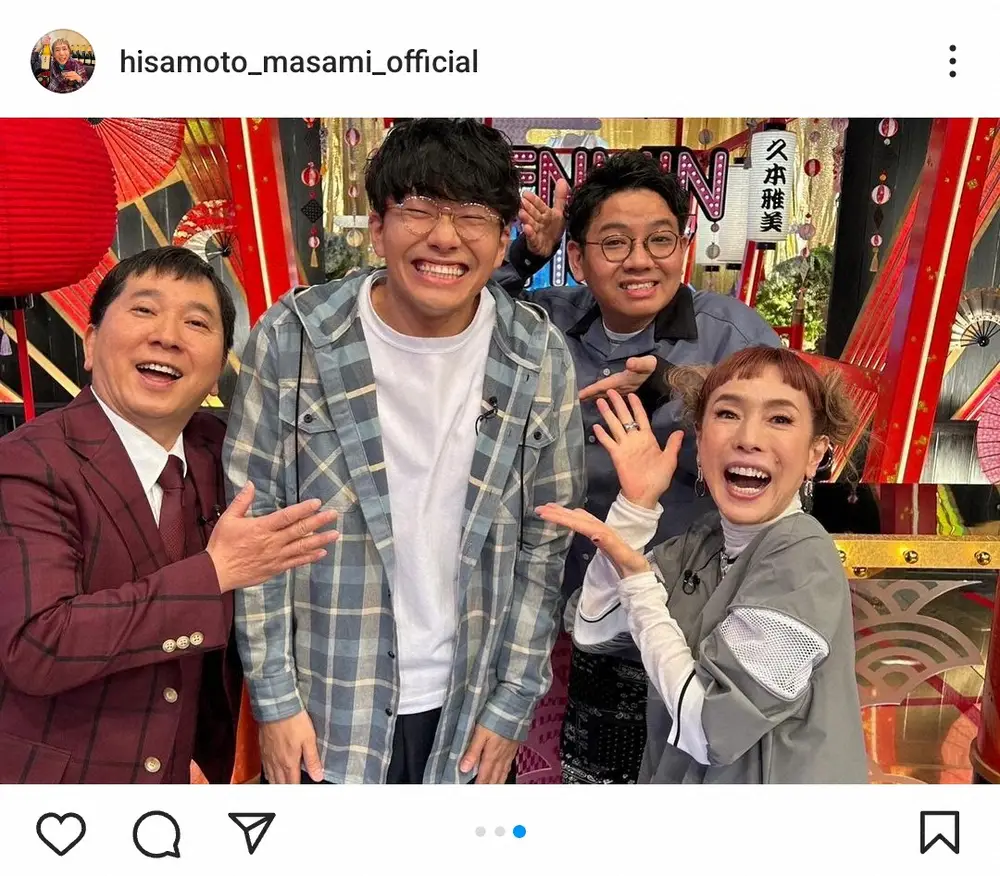 タレントの久本雅美(65)が26日、自身のインスタグラムを更新。23日に結婚を発表したお笑いコンビ「ミキ」の亜生(35)を祝福した。