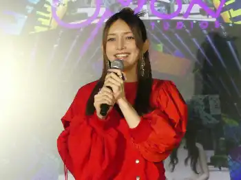 笑顔でトークする後藤真希(撮影・塩野 遥寿)