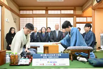 王将戦第3局始まる 藤井王将3連勝で防衛王手か、菅井八段が意地を見せるか 戦型は向かい飛車に