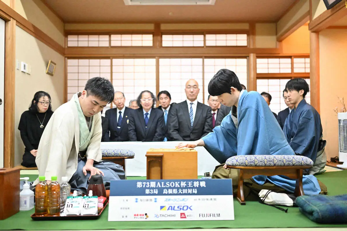 将棋の藤井聡太王将(21)=8冠=に菅井竜也八段(31)が挑戦する第73期ALSOK杯王将戦(スポーツニッポン新聞社、毎日新聞社主催)7番勝負第3局が27日午前9時、島根県大田市の「さんべ荘」で始まった。