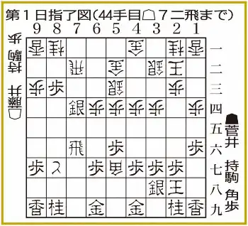 「早い戦いになりました」と第1日を振り返った菅井。前局とは対照的に、その表情に陰りはない。鋭いジャブを出し合って攻めどころを探る格闘家のような力強い眼光が戻ってきた。逆襲のにおいは対局室に色濃く漂っている。