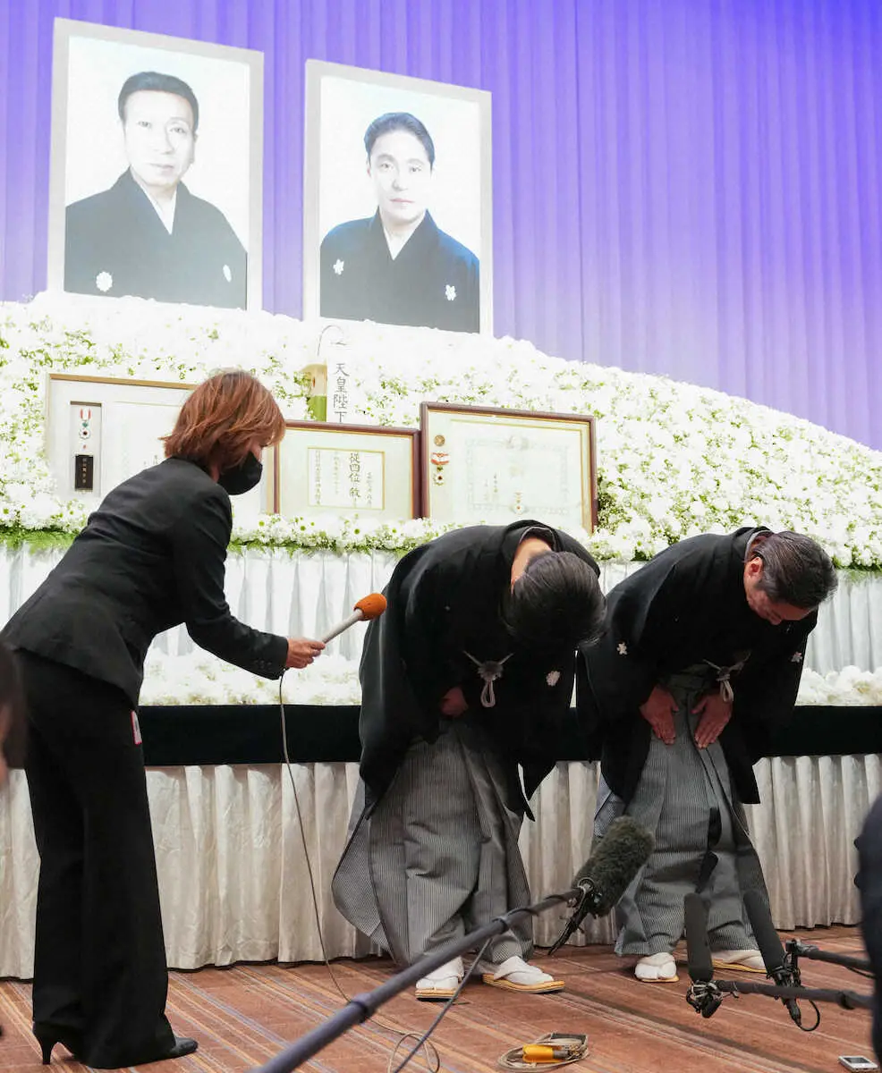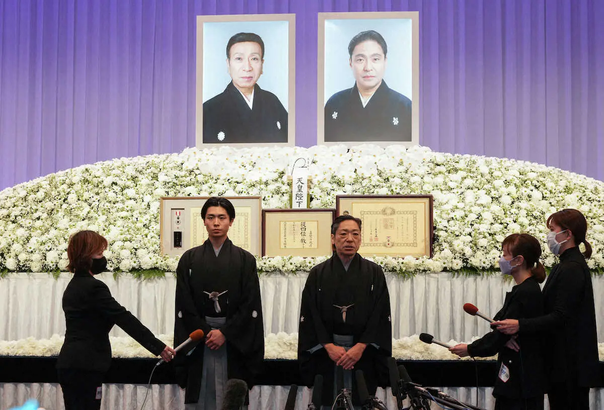 <澤瀉屋 送る会>報道陣の質問に答える市川團子(左)と市川中車(撮影・沢田 明徳) Photo by スポニチ 市川中車が猿之助の近況報告 息子の團子にスーパー歌舞伎を「話し伝えて… ギャラリーで見る この記事のフォト 2024年01月28日の画像一覧 もっと見る 2024年01月28日の画像をもっと見る