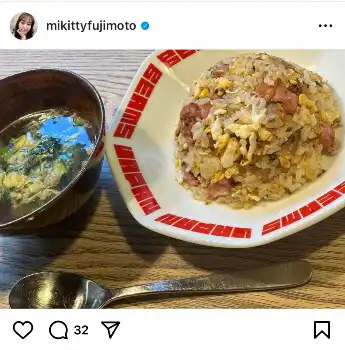 藤本は「お昼ご飯は無言の圧で 庄司さんが作ってくれました 美味しかった」とつづり、チャーハンとスープの写真を投稿した。
