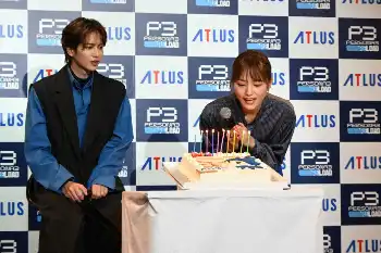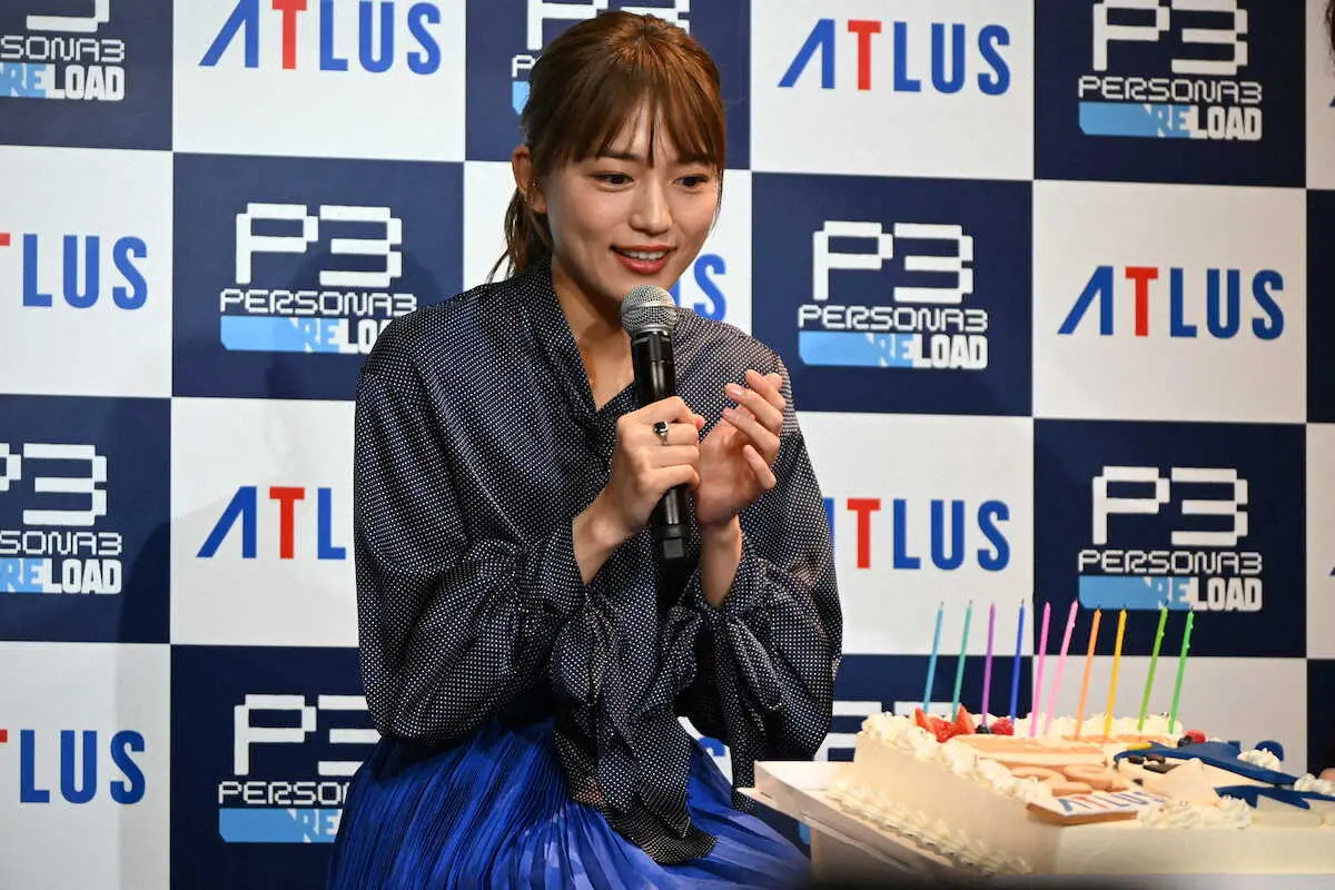 「ペルソナ3 リロード」の記者会見で、誕生日サプライスに喜ぶ川口春奈(撮影・小渕日向子)