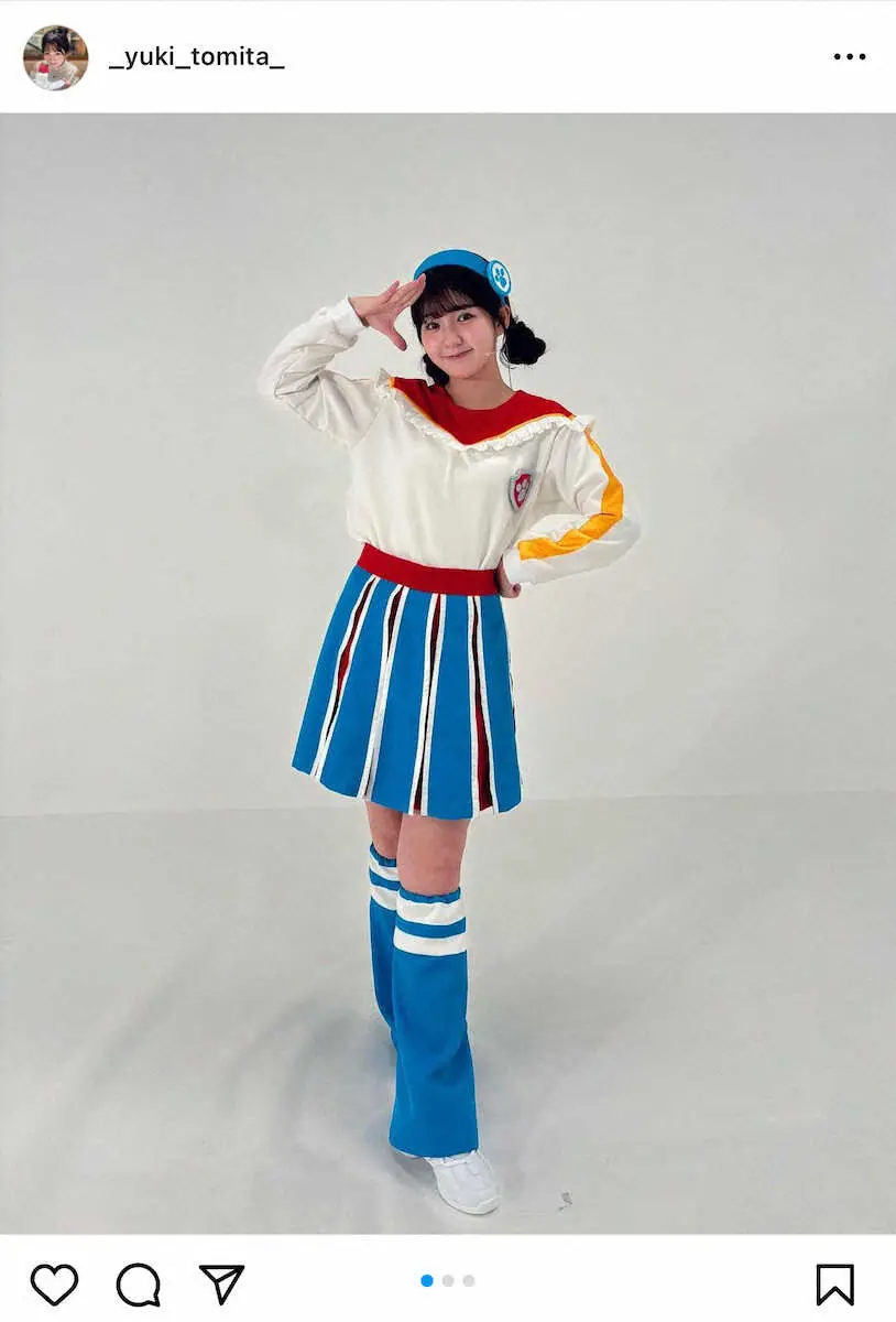 テレビ東京の冨田有紀アナウンサー(25)が2日までに自身のインスタグラムを更新。テレビ東京で放送している子供向け人気アニメ「パウ・パトロール」のダンスお姉さんの衣装姿を投稿した。
