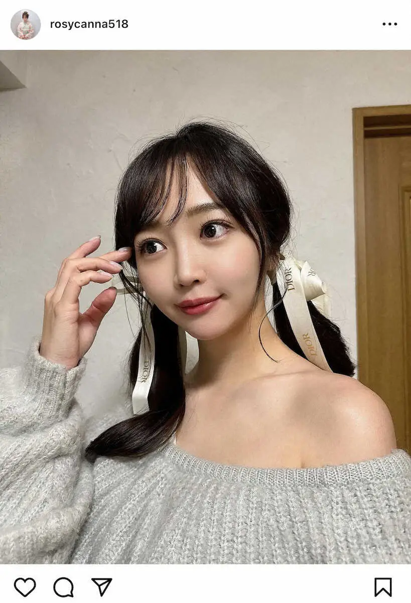 「せっかくなので番組のために可愛くしてもらった写真を」とオフショルダーでのツインテール写真を投稿した。