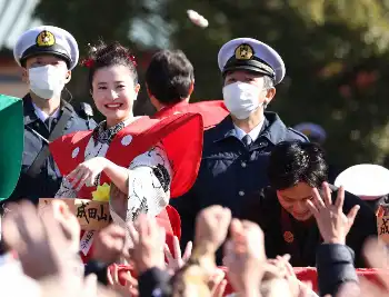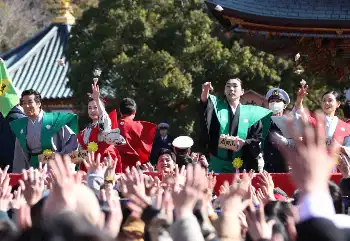 吉高由里子、柄本佑ら「光る君へ」出演者が成田山で豆まき 「きゃー!」の歓声に笑顔