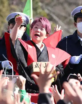 歌手の島津亜矢(52)、新浜レオン(27)が3日、千葉県成田市の成田山新勝寺で行われた節分会に参加した。