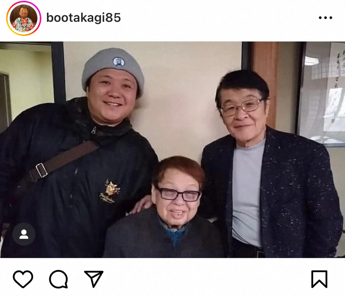 高木は「今日は寒いですね。雪はどれ位降るのかな」と投稿。仲本さんと、お笑いタレントの松田ぴろしとの写真をアップし「これは2017年の節分会の写真で、最初で最後となってしまいましたが、仲本と一緒に豆まきをしました」とつづった。