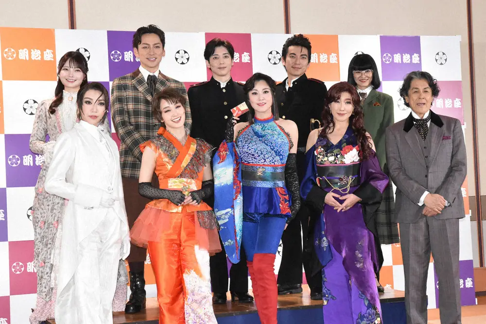 明治座創業150周年ファイナル公演「メイジ・ザ・キャッツアイ」初日公演後の取材会に出席した(前列左から)美弥るりか、剛力彩芽、藤原紀香、高島礼子、長谷川初範(後列左から)新谷姫加、川久保拓司、染谷俊之、上山竜治、佃井皆美