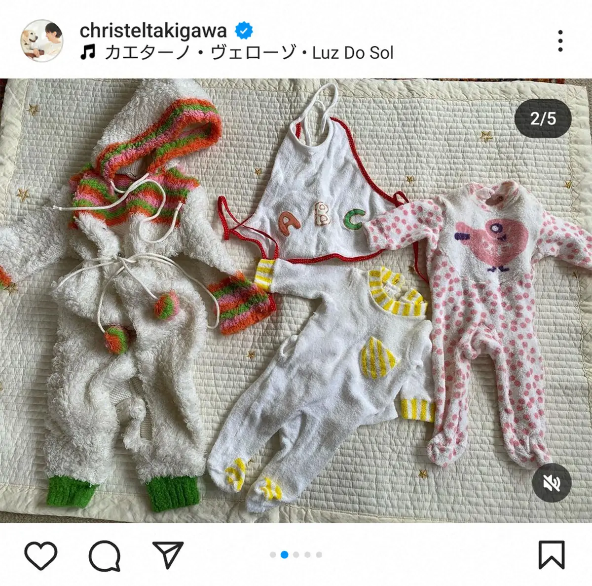 持って来てくれた服や、その服を着た滝川の赤ちゃん時代の写真を投稿し「わたしが着ていたお古をまさか自分の娘に着させる日が来るとは、、お母さん、大事にありがとう」と感謝し「わたしも残そう」とつづった。