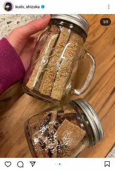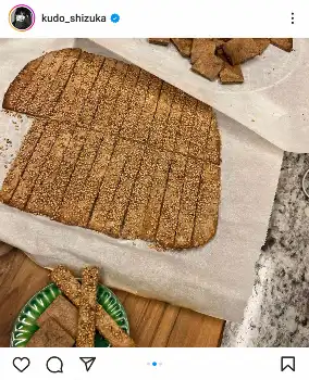 工藤は「いつものお腹お掃除」とし「シナモンクッキー ごまクラッカーは塩味」と説明。ストーリーズでは「塩胡麻クラッカーもおいしい」と記している。
