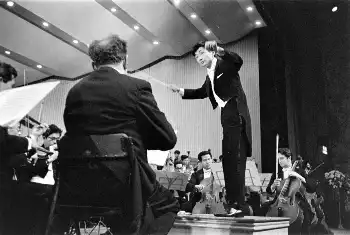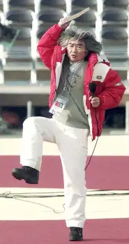 98年、長野五輪の開会式会場で合唱指導をする小澤征爾さん