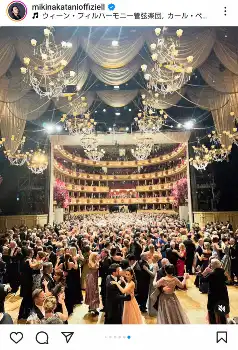 ディオールの黒いドレス姿を披露した中谷は「客席と舞台を取り払った歌劇場は、つかの間ダンスホールとなり、うら若き紳士淑女たちがお目見えするデビュタントのセレモニーに始まり、ウィーンフィルの奏でる音楽と共にオペラ歌手の高らかな歌唱や、バレエダンサーたちの華麗な踊りが披露され、開会式明けには参加者たちが鮨詰めでワルツ『美しく青きドナウ』を踊り始めます。舞台芸術の祭典と成人式とお見合いと盆踊りと仮装パーティーが一度に開催されているかのような華やぎに目が回りそうになりますが、世界中から集まった人々の盛装姿を眺めることが叶い眼福でした」と感想を記した。