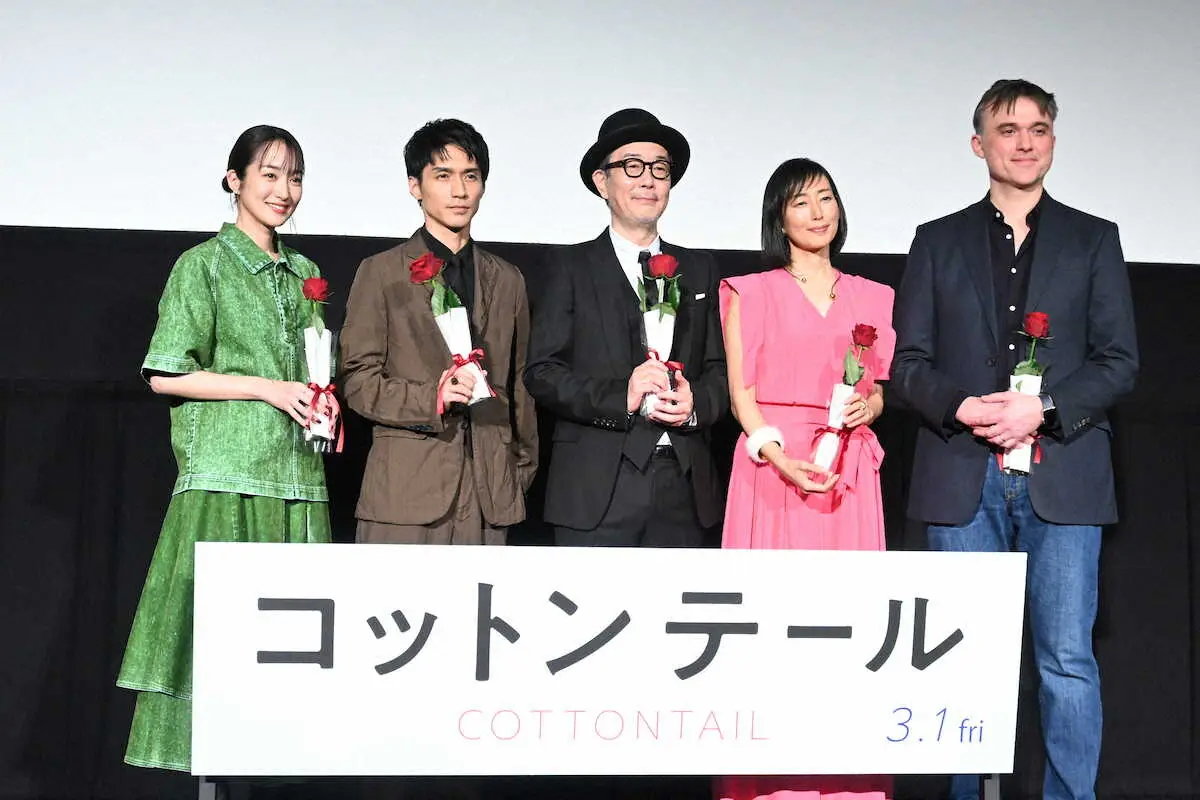 俳優のリリー・フランキー(60)が13日、都内で主演した日英合作映画「コットンテール」(監督パトリック・ディキンソン、3月1日公開)の特別先行上映に出席した。