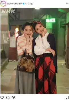 インスタグラムでは、第92回から登場した女優の田中麗奈と、趣里の2ショットをアップ。田中が演じるのは有楽町の夜の女たちのリーダー・ラクチョウのおミネ。雑誌に掲載されたスズ子のインタビューが気に入らないと楽屋に怒鳴り込んでくるという豪快な役柄だ。