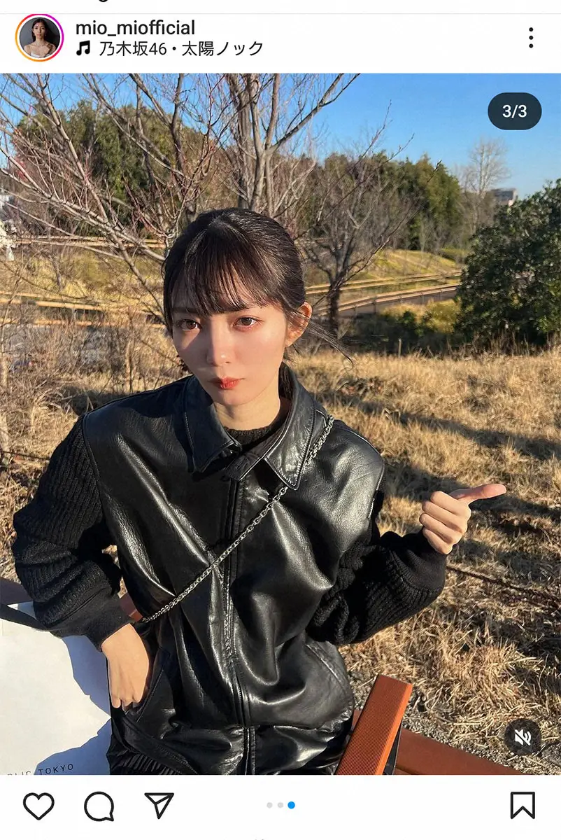 美緒は、今年20歳の妹と「少しお出かけし、たくさん食べた日」とし「全身妹の服の日でした!笑(アウターは共用)スカートはあまり履く機会がないのですが、全身黒だと甘くなりすぎなくていいなと思いました」と革ジャケットにロングスカートのブラックコーデを披露。