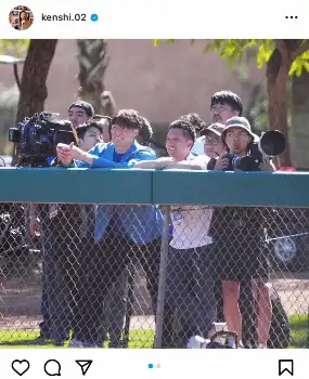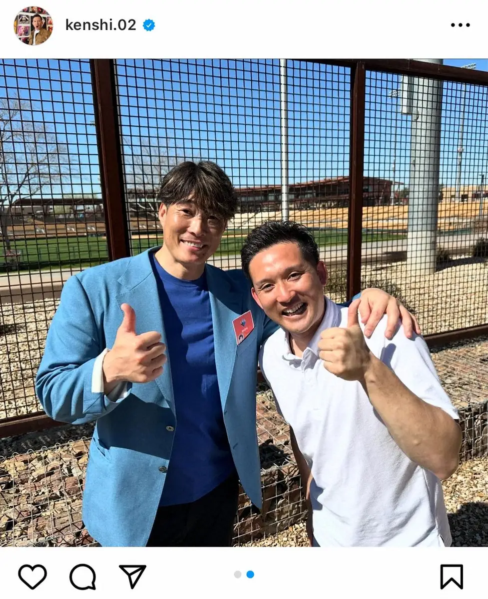 「今日はTBSのS-1でキャンプ視察に来られたヨシオさんとパシャ」と元プロ野球選手の糸井嘉男氏とアリゾナで選手を視察する様子を投稿。