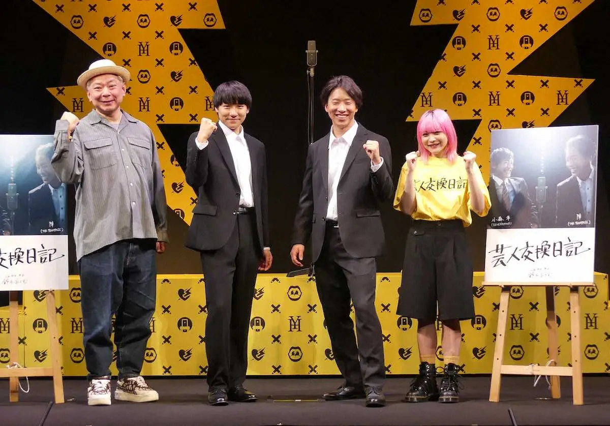 今作でお笑いコンビを演じるのはGENERATIONSの小森隼(28)とTHE RAMPAGEの陣(29)。特に小森は、鈴木氏とTOKYO FMのレギュラーラジオ「鈴木おさむと小森隼の相談フライデー」で共演するなど、親交が深い。「自分が悩んでいた時に知り合って、今では師匠と呼ばせていただいている間柄。おさむさんに褒められたくてここまで頑張ってきたので、最後になるのは寂しいですが、教えていただいた全てを返せるように頑張りたい」と感極まった様子だった。
