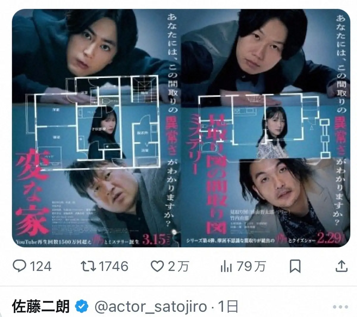 映画「変な家」のパロディー(佐藤二朗Xより@actor_satojiro)