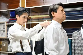 令和パート。渚が自分の孫、ゆずるが義理の息子だと知った市郎。ある土曜、ゆずるから「背広、仕立てます」とハガキが届く。市郎は都心から離れた住宅地に移った「テーラーINUSHIMA」に出向く。