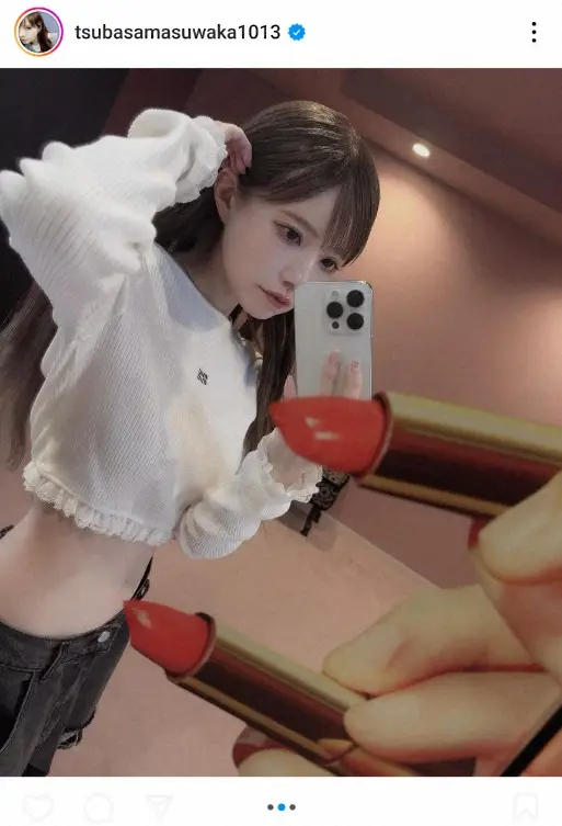 この投稿にフォロワーらからは「ほっそ…自己管理できてるのすごすぎ」「ウエスト細い うらやましい」「かわいい」「くびれお腹 ちらり」「トップスもつーちゃんも可愛い」などの声が寄せられている。