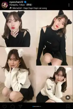 「2.22 猫の日」とつづり、猫耳のカチューシャ、ミニスカート姿で白猫と黒猫に扮しているコスプレ・ショットをアップした。