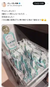 「やらかしました!」として「3個セット購入したつもりが30個きました!」と説明。自宅に住宅用クリーナーが大量に届いてしまったと明かした。「これを機に新築ばりに家の隅から隅まで磨きます」としている。