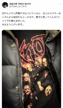 ファンからは「Tシャツめっちゃイケてる」「え、そのTシャツかっこいい!ナイスセンス!!」「おはようございます。お仕事頑張ってください」「斗真くんの投稿でメタルファンの方々が喜んでるの見て、なんか私も勝手に嬉しくなってました」などの声が上がった。