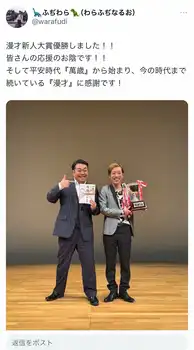 これに相方・土屋伸之も「グレープカンパニーの若手がすごい勢いあって、ランジャタイとか東京ホテイソンとかカミナリとかいっぱいいるじゃない?でも1番サンドウィッチマンイズムなのはわらふぢだったな。1番王道だから。ここから大きい賞取ってほしいですね」と期待していた。