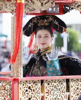 中国の春節(旧正月)を祝う恒例の祭りのメインイベント。長崎市出身の福山が皇帝として凱旋し、皇后役は同市出身の女優・仲里依紗が務めた。