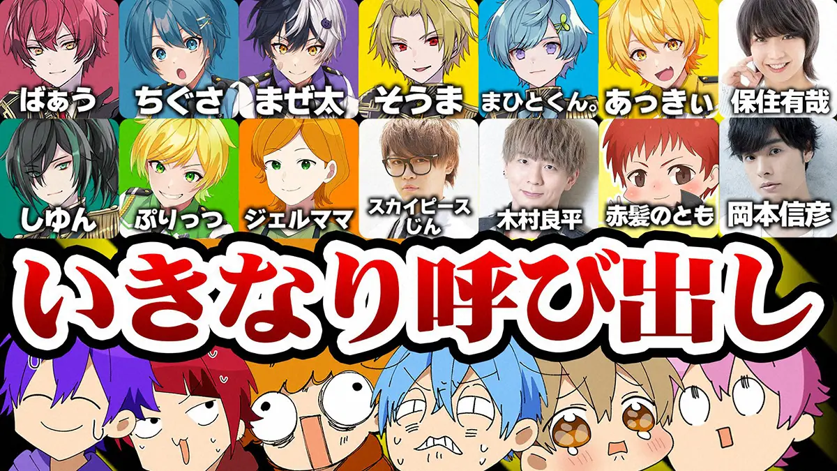 一方、声優仕事の経験があるジェル(27)は声優の保住有哉に、さとみ(31)も声優の岡本信彦に、莉犬(25)は男性二人組YouTuberスカイピースの☆イニ☆(じん)と、それぞれ貴重な友人たちに電話。ほかにも、声優の木村良平、チャンネル登録者数200万人超えのゲーム実況YouTuber赤髪のともら、そうそうたる面々が登場した。