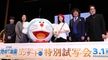 作曲家の沢田完氏の指揮で、多くのテレビや映画で主題歌に使われた「夢をかなえてドラえもん」を演奏し「とても楽しかった。最高でした」と破顔。続けて、楽団のためにバイオリニスト葉加瀬太郎(56)が書き下ろした「キミのぽけっと」を、葉加瀬の指揮で2度披露。常に笑顔を絶やさない演奏で「ワクワクが止まりません。この気持ちが伝わってくれたらうれしい」と、満場の拍手を気持ち良さそうに浴びた。