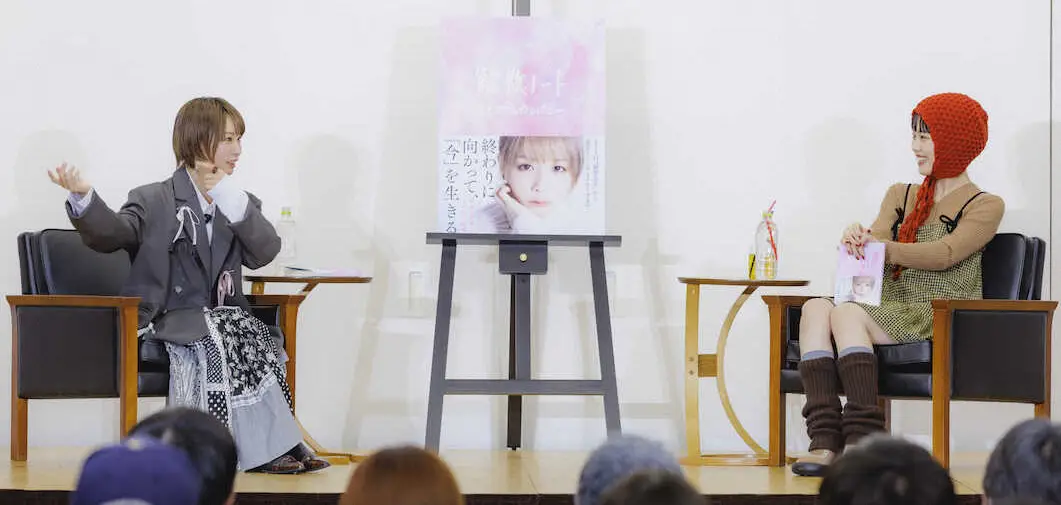 元BiSHでタレントのモモコグミカンパニー(年齢非公表)が25日、都内で著書「解散ノート」(文芸春秋)の出版記念イベントを、元メンバーのアイナ・ジ・エンド(年齢非公表)と開いた。