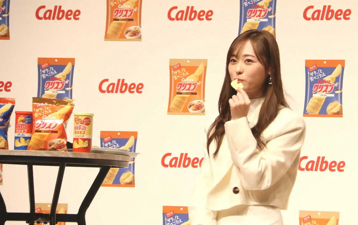 以前からポテトチップスが好物だという福原。「きれいに食べられるようにした」と今回撮影で心がけたことも明かした。おすすめの重ね食べの枚数聞かれると5枚と明かした。「もっと本当は重ねたいですけど、程よい5枚くらいにして長い時間味わいたい」と持論を述べた。