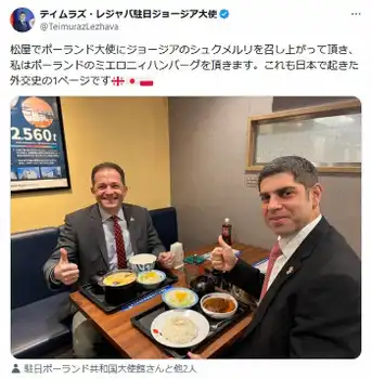 お店も恐縮!駐日ジョージア大使、駐日ポーランド大使と前代未聞の“松屋会談” 「歴史的快挙」の声