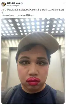 もはやホラー?霜降り・せいやのアレン様メーク 妻の爆笑信じてオフせず帰宅も「エレベーターでこれは…」