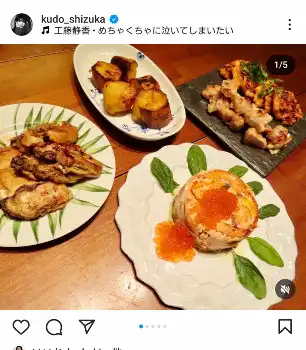 工藤静香 メインテーマは「いくらの脱走」ズラリ6品の手作りディナーに「レストランのコースみたい」の声