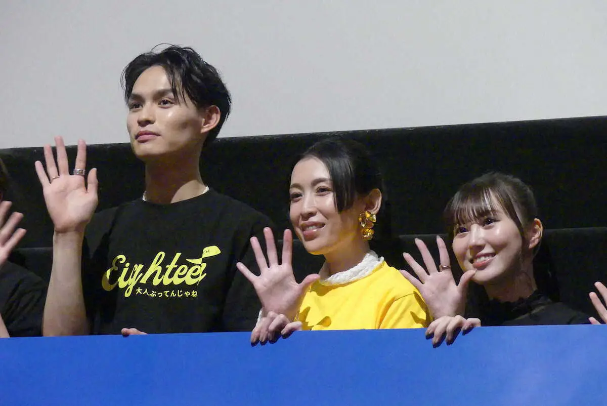 舞台あいさつを行った(左から)兵頭功海、雛形あきこ、三原羽衣