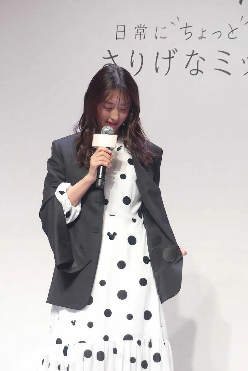ドット柄の一部が、ミッキーマウスのシルエットになっているワンピースの魅力を語る山本美月 Photo by スポニチ 山本美月 “隠れミッキー”ジャケット着用し「日常が楽しくなる」 ギャラリーで見る この記事のフォト 2024年03月05日の画像一覧 もっと見る 2024年03月05日の画像をもっと見る