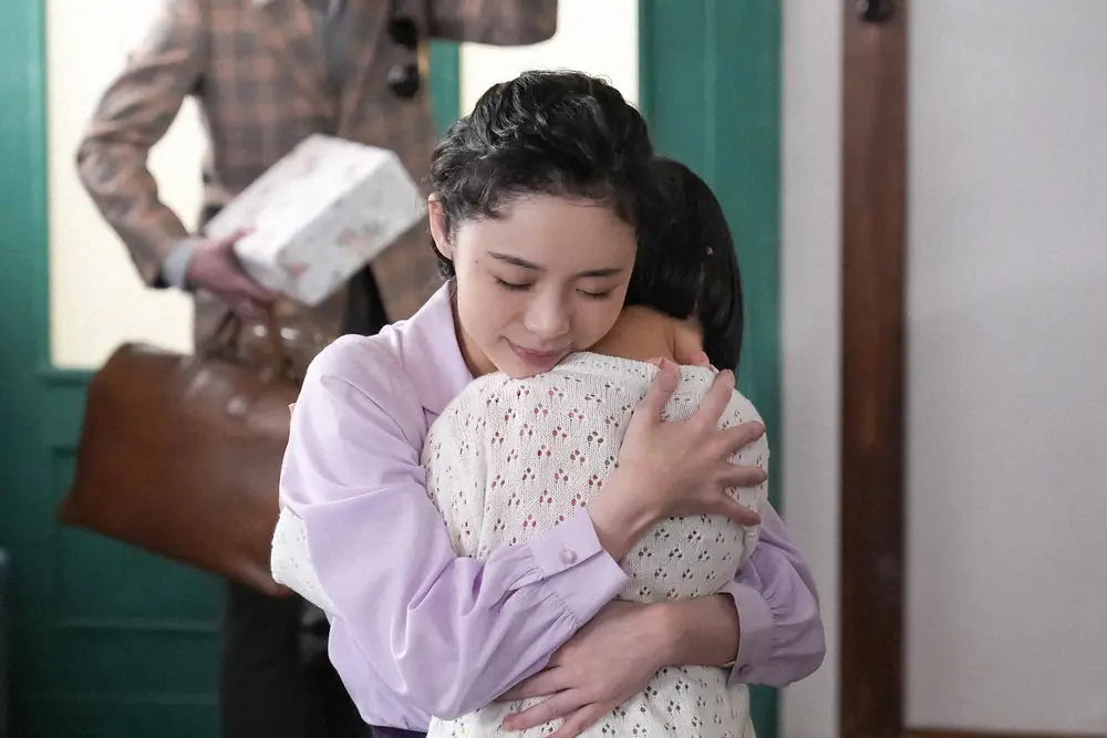 連続テレビ小説「ブギウギ」第109話。スズ子の新居・玄関にて。新居で待っていた愛子と再会するスズ子(趣里)(C)NHK
