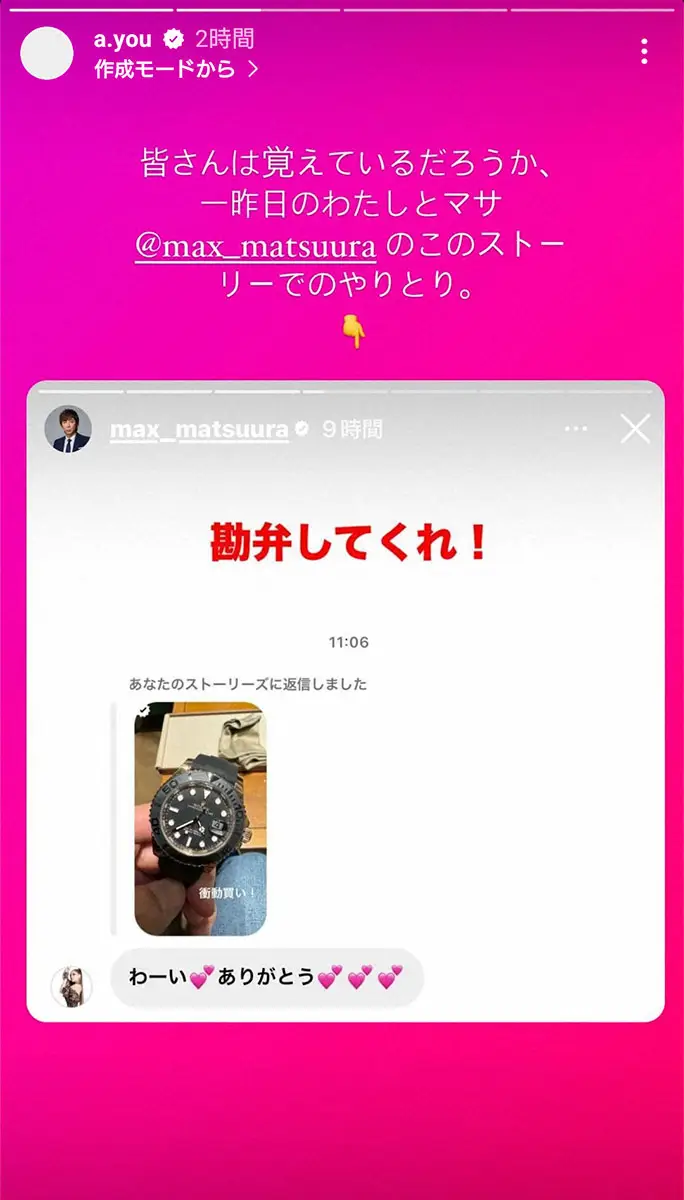 浜崎あゆみ公式インスタグラム(@a.you)から 浜崎あゆみ 松浦会長から440万円の腕時計サプライズプレゼント 「映画か… ギャラリーで見る この記事のフォト 2024年03月07日の画像一覧 もっと見る 2024年03月07日の画像をもっと見る
